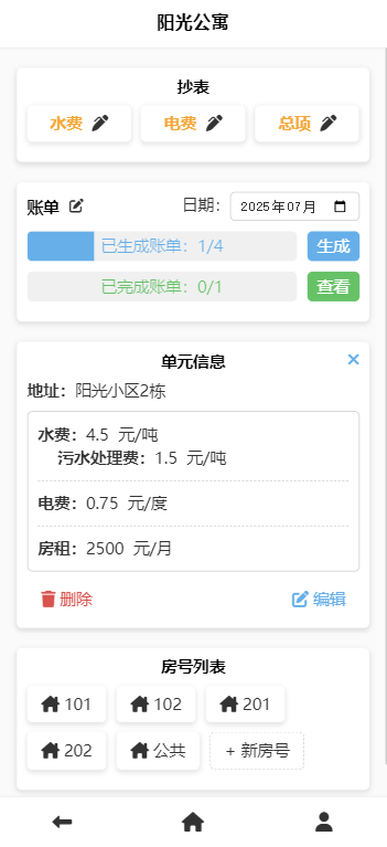 单元中的费用信息为默认费用信息,作为添加房号和设置公摊时的默认费用项,具体数值和费用项可在房号页面和公摊页面修改。